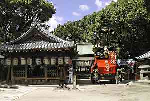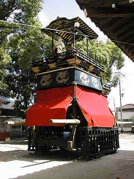 牛立天王祭りは,名古屋市中川区牛立町にある牛立天王社の祭礼で,この界隈は 現在では住宅街になっていますが,かつては名古屋の城下町を取り巻く農村の一つでした.今でこそ農家もなくなってますが町の所々にその名残がみられます.そのような,純農村だったここに伝わるのが,この牛頭天王車です. 名前を「牛頭天王車」といい,天保7年(1836)頃の建造と思われ,慶応元年(1865)に現在の北区清水2丁目にある八王子神社の山車を譲り受けたものです. |