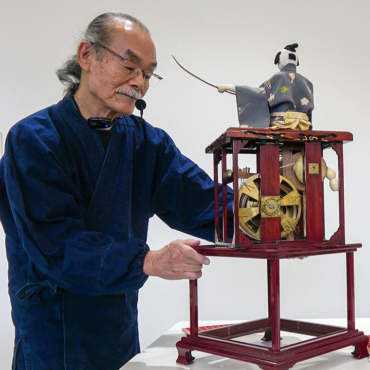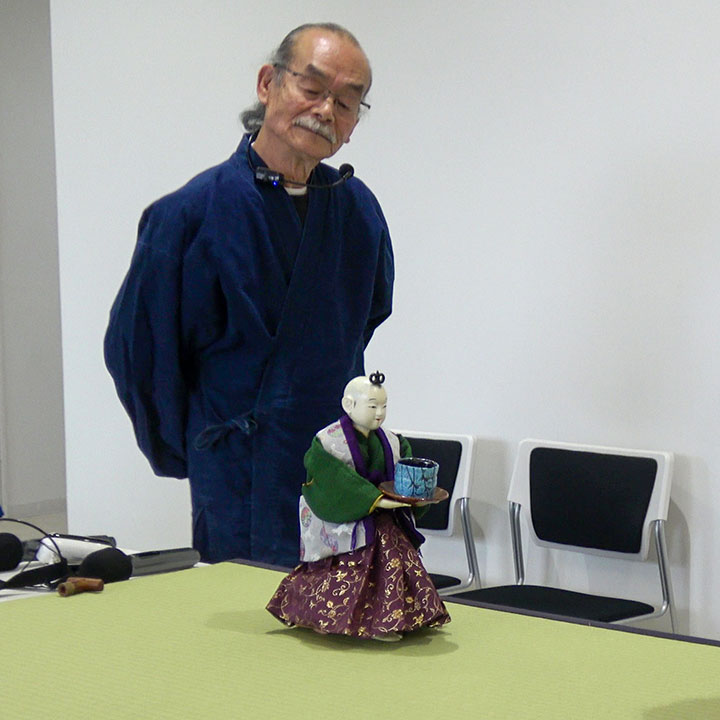 江戸後期に東芝創設者の田中久重により2体制作されたが、今回披露されたのは平成10年(1998)九代目玉屋庄兵衛により復元されたもの。