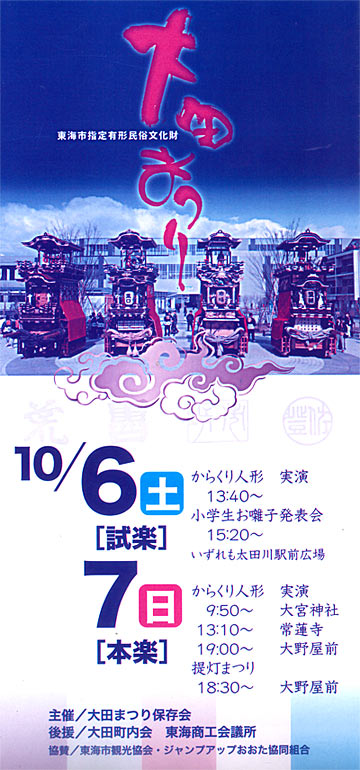 ※6日15時20分より太田川駅前にて小学生お囃子発表会.