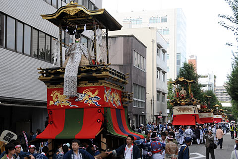 山車が通った本町通りを往時の町名で言い換えると、中須賀町、鉄砲町、玉屋町・・・となる.
