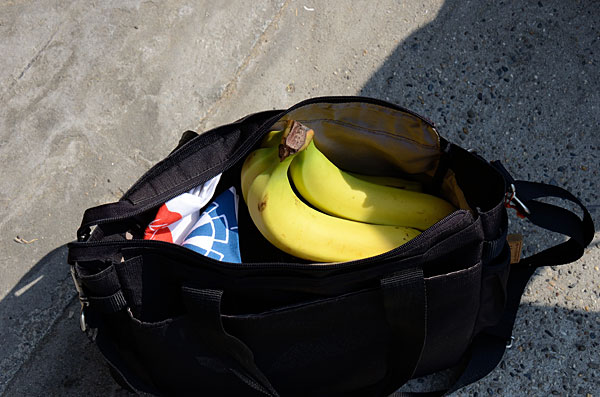 ※これは後で見せてくれたnovaさんのバッグであるが、既に何本かのバナナは秘密の目的で消費されてしまったもよう.(本人は食したとうそぶいているが)