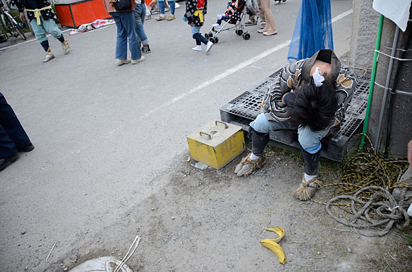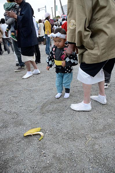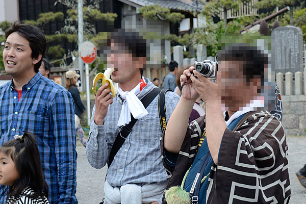 (撮影者注:群衆の中でのロケも大変だったが、2人のバナナ仙人も恥を捨てなければ叶わぬシーンだった)