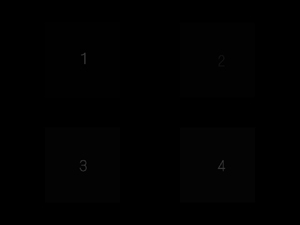 | 4 | 試しに今度はブライトネスを最大にしてみて下さい.黒い画面から四角が4つ見えてくる. この四角は左上から右下の順に明るさを少しずつ変化させてあります. |