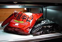 ネガやポジは多すぎて入りきらない.聞くところによるとCD-Rも湿気はよくないそうだが、一々面倒だ.ぬいぐるみを入れてみたが、乾燥させてもどうと言うことはない. バイブルと言うべき伊勢門水の「なごやまつり」もいいが、この本は元からカビくさい.カビが防湿庫に充満しそうだ. 数日後、気が付いたら食べかけのスナック菓子が入っていた.どうやら息子のしわざらしい.なるほど菓子か.....やるな、おぬし、と思ったが、何だかカメラが臭う. |