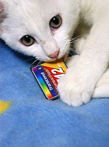 | 所有しているメモリカード(コンパクトフラッシュ=以下CFカード)で容量の一番大きいのは512M.これでE5700の最高画質で160枚以上は撮影出来る. このカードを居間のテーブルの上で見つけたのが事の発端だった. 私は自他ともに認めるズボラ人間ではあるが、フィルム・CD・MDなど各種メディアの取扱だけは慎重である.CFカードならケースに入れてバッグの中か、防湿庫に保管してあるはず. こじろー(シロクマの子)の写真でも撮ろうと、これをデジカメにセットしたのだが、表示がエラーになって認識しない.もう一つのデジカメでも同じだった.しつこいようだが更に別のデジカメも同様.... そして、パソコンのカードリーダ−に挿入するとWindowsXPがフリーズしてしまう.ここまでやれば壊れている事を認めない訳にはいかない. まさかオール電子部品のメモリカードが壊れるとは思いもよらなかったのだ. 不幸中の幸いだったのは、画像データが入っていなかったこと.もし祭りを撮った後で160枚の画像が消えていたら、きっとショックで寝込んでしまっただろう....やはり気になったのは、CFカードがテーブルの上にあった事.カードが勝手にワープするはずはないので誰かが故意に動かしたとしか考えられない. 家族全員に問いただしたところ、かみさんが「私がやった」と自供した. だが、廊下に落ちていたので、テーブルの上に置いただけだという. 更に衝撃的な事実が判明した.こじろーがコレを使って廊下でホッケーをしていたという. 壁にカンカンぶつけて遊んでいたのだと..... 最悪! またもやメモリ不足に陥ってしまったのだ.早急に何とかしなければ....... このCFカードお前にやるけど、エサ代減らすから覚悟しな.こじろー! |