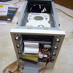 組み込みは簡単だった.既存2台の外装をばらして裸のHDDを取り出し、HDDケースにねじ止めしてコネクタを差し込むだけである.