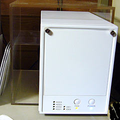 で、ネットで見つけたHDDケースなるものを導入することにした.食パン2斤分くらいの大きさのケースにHDDを4台内蔵出来るという.コンセントは1コで済むし、USBケーブルも1本でいい.一石四鳥である.