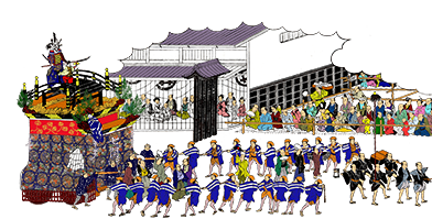なかでも行列の先頭(隔年で最後尾)を務める下七間町の橋弁慶車は、元和6年(1620)の創建で、上段に架けられた五條橋の上で立ち回る弁慶と牛若のからくり人形が人気の山車でした。