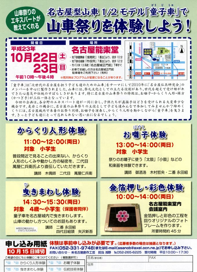 以上4つのプログラムを、小学生を対象に行われます。(曳き回しのみ4歳以上)