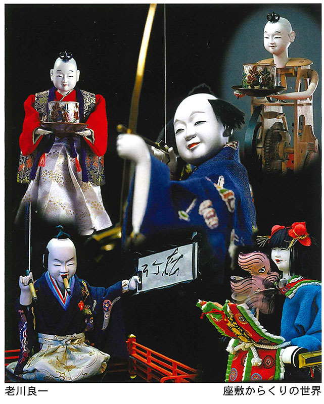尾張では多くの山車のからくり人形が春秋のお祭りを盛り上げています。 尾陽木偶師九代玉屋庄兵衛氏が江戸時代から続く、その技を今日まで伝えてきました。 そんなからくり人形と玉屋庄兵衛氏に魅かれて、創作活動を続けてきた二人が展覧会を催します。 老川良一(写真)は「弓曳童子」「文字書き人形」「茶運び人形」などの緻密な製作過程、人形の表情、玉屋庄兵衛氏のものづくりの姿など、牧内則雄(絵画)はからくり人形と山車祭りが作り出す時代絵巻を見せています。