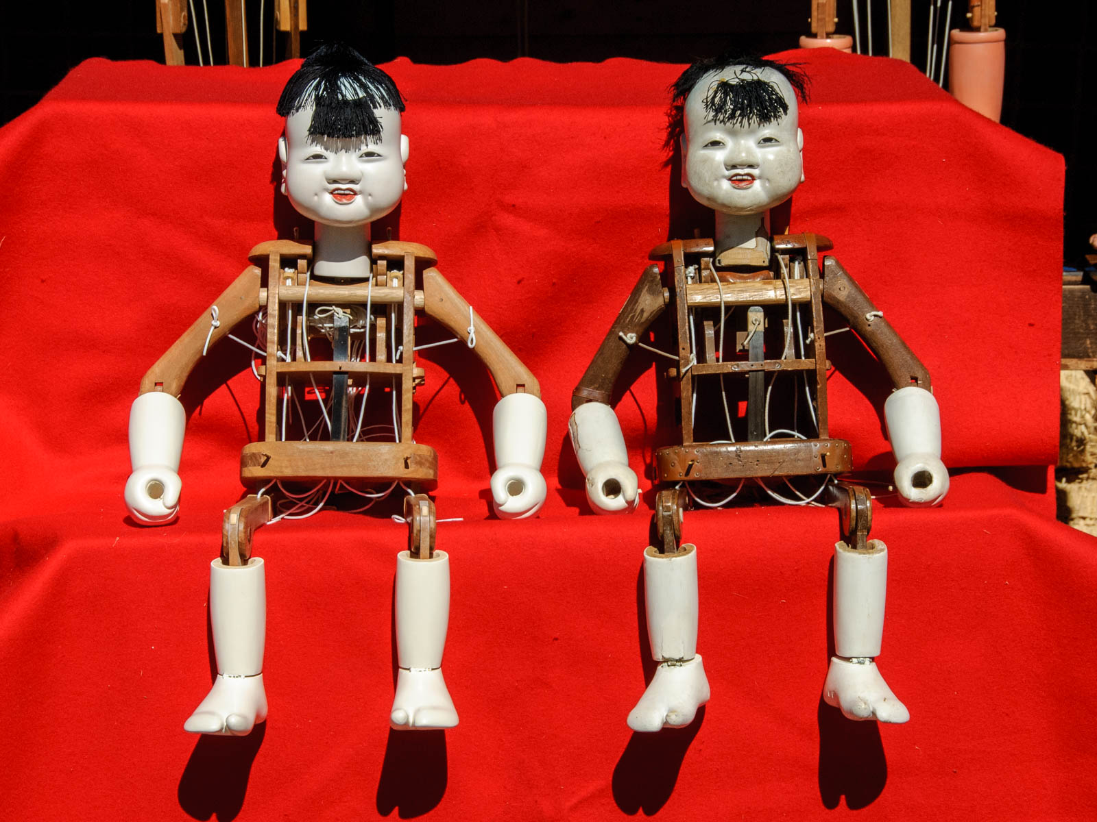 今回の展示では特別に新旧の人形が並べて展示されています。この機会に間近にからくり人形をご覧になってはいかがでしょうか。