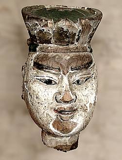 先日お伝えした犬山・外町公民館での水引幕下絵の撮影が終わった時の事です.下絵の箱が収納されているスチール保管庫内の,片隅に古びた人形の頭が二つありました.それは,大人の拳よりやや大きい程度で,塗りは剥げてかなり古いもののようです. 顔の造りや表情も,現在の尾張系の山車に乗る,からくり人形のそれとは,随分違っており,もちろん,現在の外町『梅梢戯』の唐子とは明らかに異なります. 頭の後ろに付いた真鍮の金具が特徴的で,同じ犬山市の魚屋町「真先」の天女に似たもののようです. 犬山から帰って,自宅で『犬山祭行粧絵図』が収載されている資料を開くと,...
