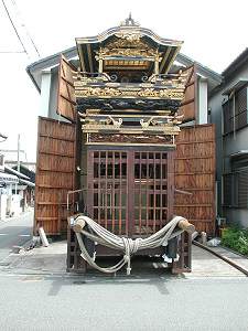 | 本町組山車と後方は8月に取り壊しが決定した 旧圓通の山車蔵 |