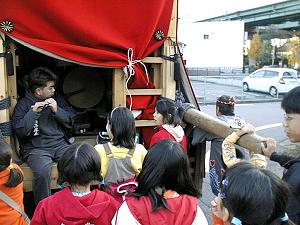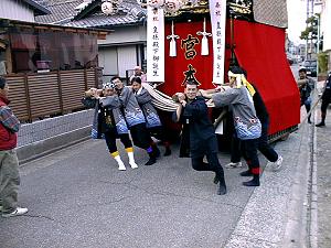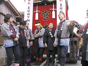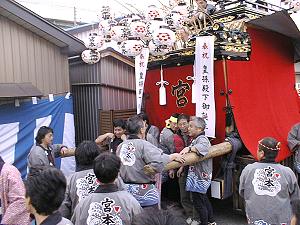 夕刻4時から伊勢音頭で祝い,星宮まで,祝賀の曳行開始です.