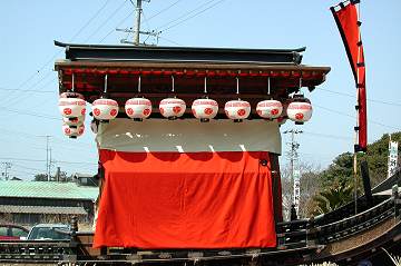 | 建造当時は下の豊浜の山車のように,高欄があった位置に唐破風を載せる改造がされているらしい. | ![]() |