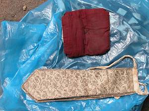 ![]() これは不明.弓射りの小唐子が持つ矢を入れる袋だろうか. |
