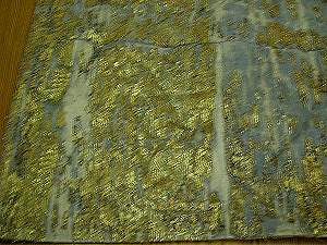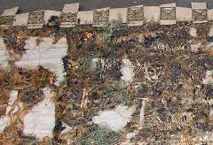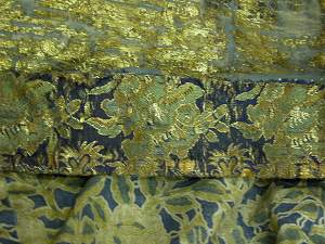 ![]() 部分的だが意匠が確認できる. 紺地に龍や鳳凰の模様 |