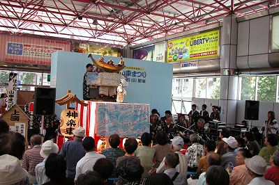 今秋10月半田市で行われる「第5回はんだ山車まつり」のPRキャンペーンが名古屋の金山総合駅イベント特設ステージにて行われ,亀崎田中組の祭り囃子とからくり人形「傀儡師」が披露されました.