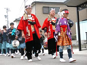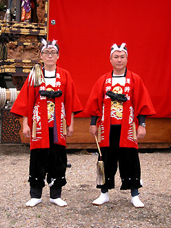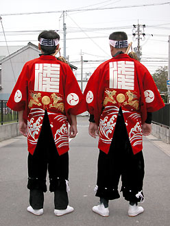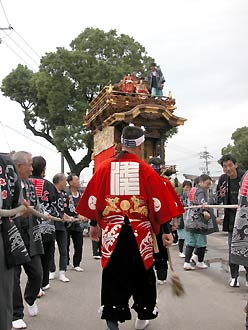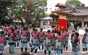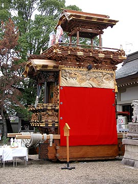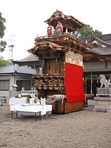 浅井山「宮本車」の大幕並びに赤法被が,はんだ山車まつりを1週間後に控えた9月29日,若宮八幡社にて披露されました.