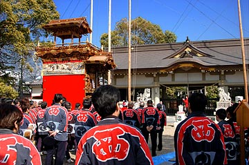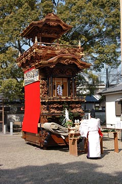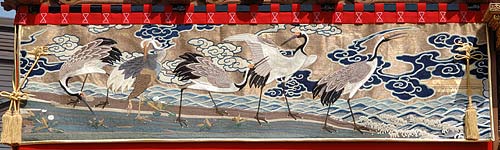 半田市乙川・西山「神楽車」の水引幕修復と大幕新調の披露が若宮社で行われました.