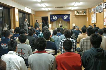 ![]() 組員が集まり「理事挨拶」と「注意事項」が告げられる. 中学校からの要望として 「中学生に酒やタバコを勧めないでくれ」 当たり前ではある(^。^) |