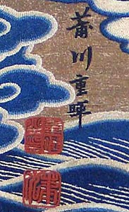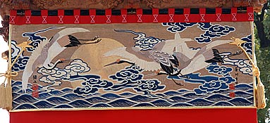 半田市乙川祭りの西山「神楽車」の水引幕は「日の出に鶴の刺繍」で天保5年に作られた縫潰しが豪華な刺繍の逸品です.今年(平成16年)修復されたのは当張州雑記でも既報の通り.この水引幕後部に下絵の作者と思われる『甫川重暉』の号が見受けられますが、これまで詳細は不明のままでした. 今回この甫川重暉の人物が特定出来ましたので、紹介させていただきます. 甫川つまり小田甫川(おだほせん)は名を重暉という.崋山十哲の一人で、文化2年旗本家臣戸田氏の家臣の家に生まれる.末子であった為幼少の頃から書家で身を立てようと最初山崎甫田に学ぶ.「甫川」または「拙修亭」とも号した. その後渡辺崋山の門に入り、椿山らと交わり指導を受け花鳥を得意とした. 富士山に登ること前後6回、20歳前後以後より諸国を漫遊し尾張にも訪れる. 弘化3年、知人の多かった武州熊谷に遊び、客と会飲し談笑中卒倒して42歳で亡くなったという. 小田甫川と尾張や乙川との関わりは不明ですが、この水引幕下絵は甫川晩年の作品と推定されます. |
