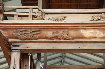 | 高欄下の支輪周囲は宝尽くし、前棚には松竹梅の彫刻 | ||