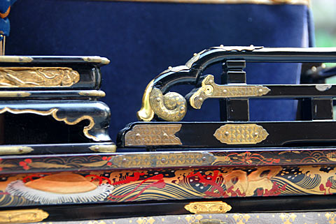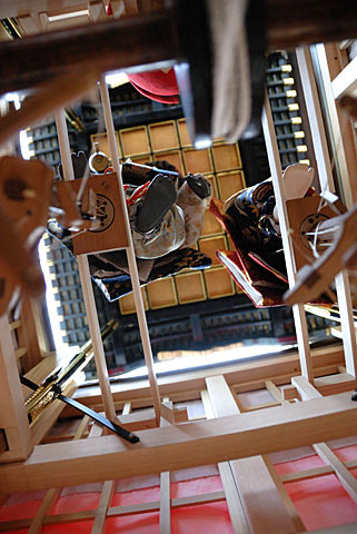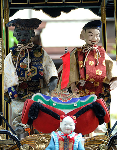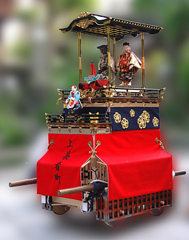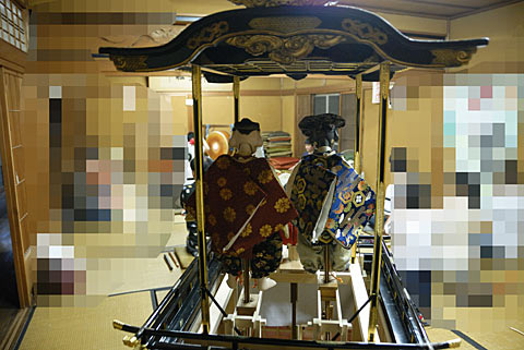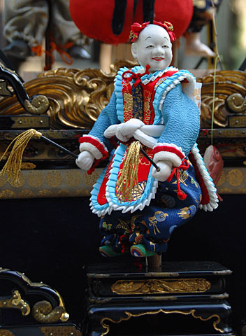 戦災で焼失した名古屋市中区上長者町の所有した「二福神車」の山車模型です. 江戸時代末期の制作で平成19年修復.からくり人形の作者は竹田源吉で、写真の模型には八代目玉屋庄兵衛が復元した人形が乗っています.実物と同じように糸からくりで操作出来ます. 上記以外の詳細等質問にはお答え出来ませんのであしからず.