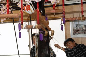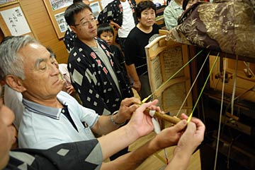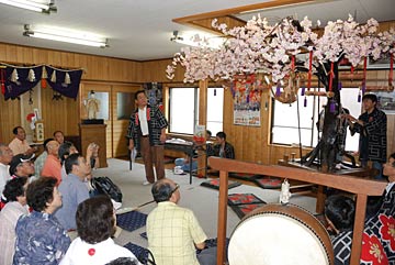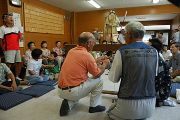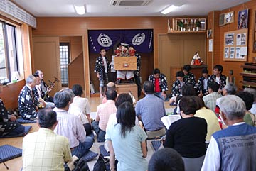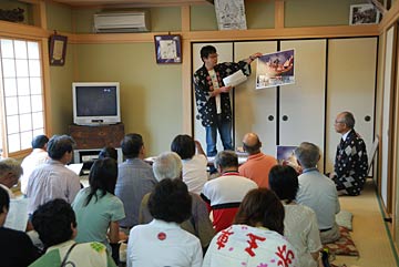 講座の前半の会場を亀ア西組組事務所で桜花唐子遊び、後半を田中組組事務所にて傀儡師の解説と実演が行われました.