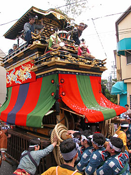 神皇車が筒井町に譲られた明治20年以降、この筒井町の2輌の山車が共に縦継ぎの三色幕で曳かれていたのです.