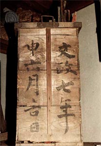 この神功皇后車は今まで文政7年(1824)建造とされ、その根拠となっていたのが雨覆の箱に記された『文政七年 申六月吉日』の墨書でした.