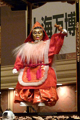 上山人形は聖徳太子が山で笛を吹いている時に山の神が現れ舞った姿を舞いにしたものです. |