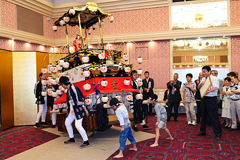 ![]() 笛・大太鼓・小太鼓・小鼓・人形方が乗り込んでお囃子. |