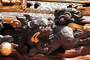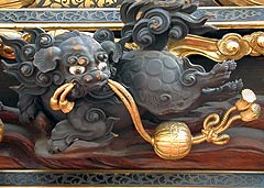 「祭吉の山車祭講座」で、『獅子と手鞠(まり)の写真』が必要になったnovaさん.横須賀北町組の山車後部に彫刻があるのは知っていたし、写真も持っているのだが、完璧主義のnovaさんはもう少しアップの写真が撮りたかったらしい. 産業祭りに出かけて展示されていた山車を夢中で撮っていたnovaさん、ふと何か気が付いたらしい... 獅子が毬をくわえていないのだ.本当なら右のように毬に付いた紐をくわえているはず. 面白そうだから、しばらく離れて見ていたら、「変だな、困った、困った.....」novaさんブツブツ言いながら、どこかへ行ってしまった. では、私も帰ろうかなとブラブラ歩きながら、ふと道端を見ると. あれ?こんなところにお年玉.... |