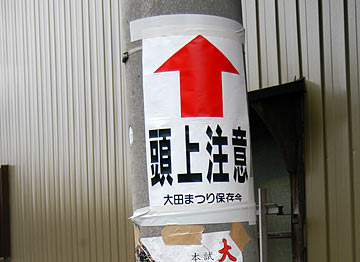 頭上注意!「ここに低い電線があるから、引っかけないよう気を付けなさいね.」という事だろうか.親切・丁寧・万全・完璧・転ばぬ前の杖である、