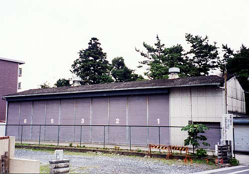 | 四日市のAKIさんから提供いただいた写真です.四日市松原(聖武天皇社祭礼)の石取祭車が5台収納してある蔵....というよりガレージのようですね. 文字や飾りが全くないので、もし私が通りかかっても絶対気が付かないと思う. AKIさん、今度はシャッターが全部開いて、5台ずらりと並んだ写真お願い! ※最初6台かと思ったら、4号室が欠番(^_^;) |