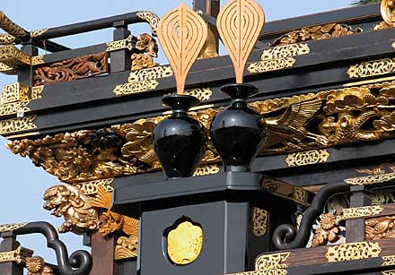 横須賀まつり大門組の山車である.前棚にはからくり人形ではなく、鮑を入れた1対の瓶子が三宝に乗っている、珍しい趣向だ.