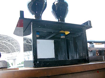 大門組の山車を学術調査中に発見したのだが、この三宝には裏が無い.前方と左右の側面しか存在しないのだ、定説となっている三方に開いているという穴も、実地調査では正面に1個しか発見出来なかった.