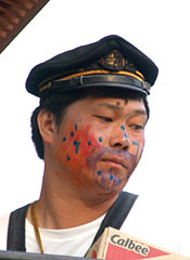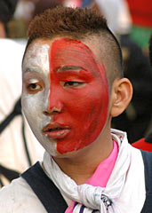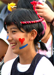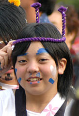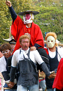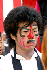 静かだった神社の境内は忽然と現れたえどくり集団で埋め尽くされる.まさに老若男女入り乱れてのコスメティック・パフォーマンスである.