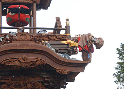 と、思ったら突然大黒さんが真横にバタン.山車から落ちそうに!