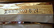 食べようと思ってふと、パッケージを見ると賞味期限が2003.8.24と刻印されている.....