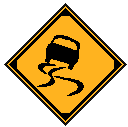 この道路標識は 「どういう滑り方をすればタイヤの跡が交差するんだ!」で有名なスリップ注意の標識です.