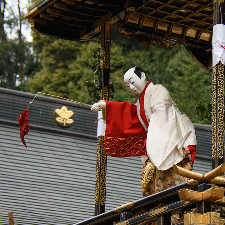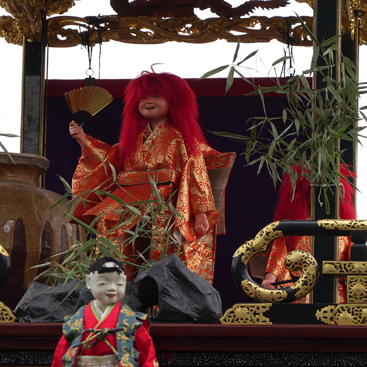 演技次第:謡曲に合わせ猩々が舞う。2体乗せられた人形は現在1体のみ可動。