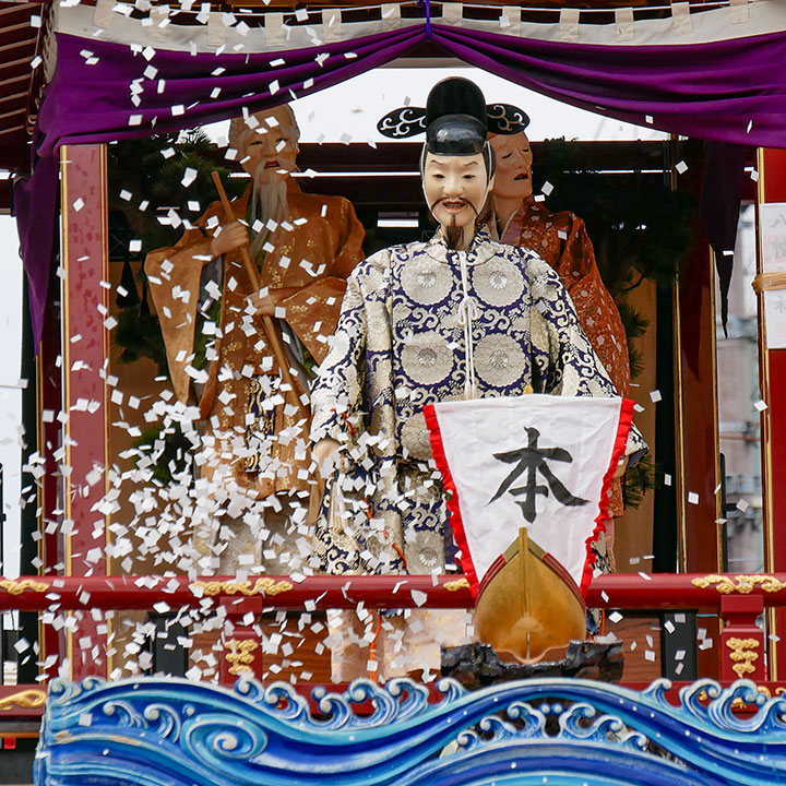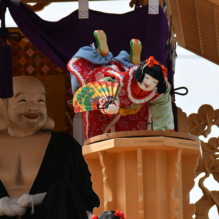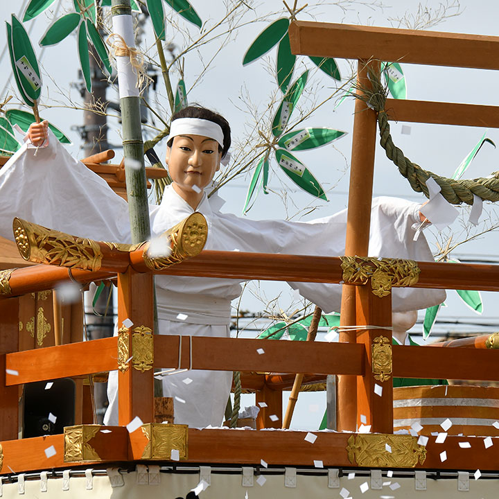 山車は名古屋若宮祭の末廣町黒船車を買い受けたもの。若宮祭時代の黒船車ではからくり人形を用いず、子供の能舞を演じていた。