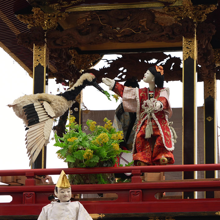演技次第:踊り舞台で子供の日本舞踊が終わると、謡曲「竹生島」に因んだからくりが演じられる。