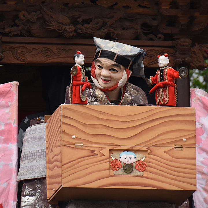 先代の山車にも二福神のからくりがあったが、山車とともに美浜町布土に売却して、永らくからくりがなかったが、平成23年(2013)九代目玉屋庄兵衛によって新調された。