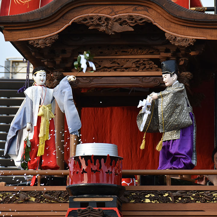 人形5体:(前山)三番叟、(上山)平忠盛、八咫烏、神剣小烏丸、大蛇