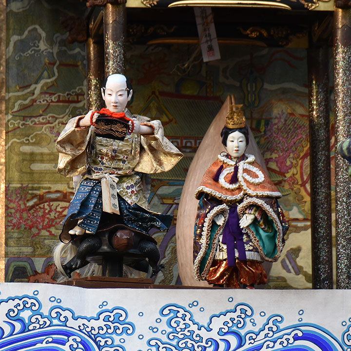 人形4体:(前棚)猩々、(上山)浦島、亀、乙姫