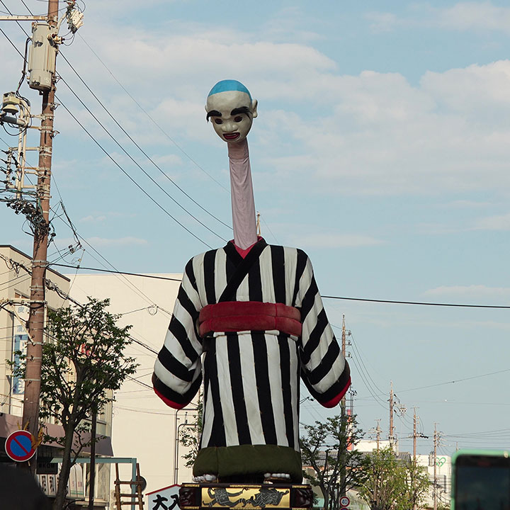 全高9m、身の丈4.5m、延びた首の長さ2.7mで、首の可動部分は3mに及ぶ長いセミクジラのヒゲが使われている。山車本体は戦災で焼失したが、大入道は疎開させて無事だった。