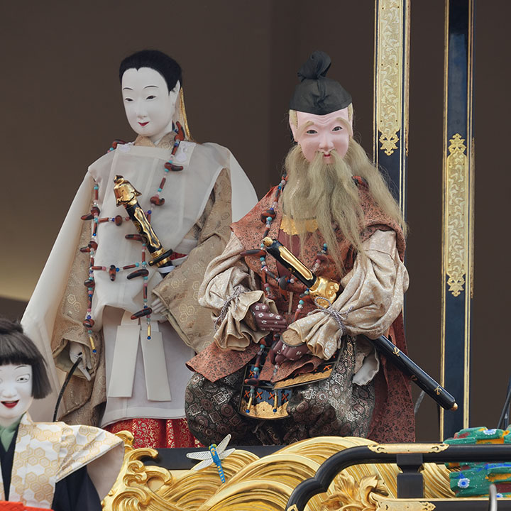 総代人形が眼をむき、舌を出しながら御幣を左右に振る。